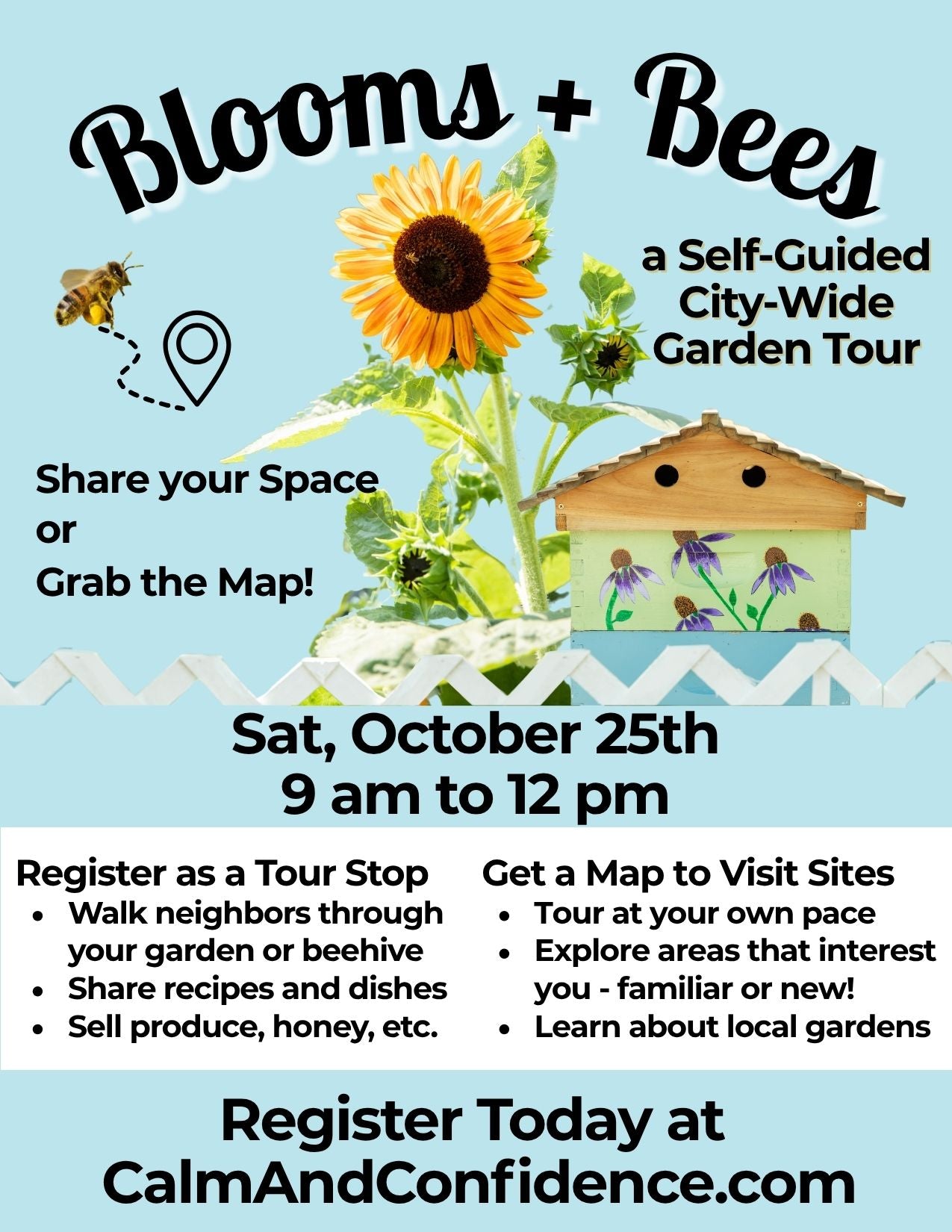 🌸 Register Your Garden or Hive – Share your hard work with the community! Registered hosts receive a yard sign to mark their spot and support to welcome visitors. Whether it’s a pollinator patch, veggie garden, or thriving hive, you’ll be part of a city-wide celebration of growth and creativity.